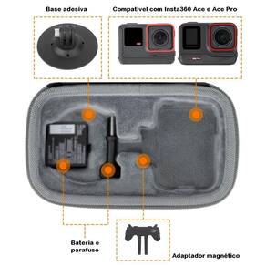 Bolsa transporte para câmeras insta360 ace/ace pro e acessórios Bolsa transporte para câmeras insta360 ace/ace pro e acessórios A bolsa de transporte exclusiva para câmeras de ação insta360 ace e ace pro da sunnylife, foi projetada para oferecer segurança e conveniência. Ela permite armazenar com segurança sua câmera e todos os acessórios essenciais. Em seu interior há compartimentos dedicados para o suporte adesivo, baterias e parafusos, que garantem que tudo fique organizado e protegido. Além disso, a bolsa inclui um prático bolso de malha com zíper, perfeito para armazenar acessórios menores como cabos, cartões microsd e outros. O estojo é rígido e oferece proteção contra choques e arranhões, mantendo seus equipamentos seguros em qualquer situação. E com seu revestimento macio de flanela, você pode confiar que seus dispositivos serão protegidos contra arranhões durante o transporte. Principais vantagens: - estojo rígido e com revestimento macio - armazena com segurança cabos e cartões microsd - compartimentos para os acessórios essenciais e principais - transporte seguro e fácil para câmeras insta360 ace/ace pro Dados técnicos: Marca: sunnylife Modelo: ist-b755 Material: pano + flanela Tamanho: 17,7 x 10,3 x 6,4cm Peso: 134g Compatibilidade: Compatível apenas com as câmeras insta360 ace e ace pro e seus acessórios Itens inclusos: 1x bolsa para câmeras insta360 ace e ace pro 1x mosquetão Câmera e acessórios não inclusos Imagens meramente ilustrativas de 90 dias após o recebimento do produto Esta é válida para todo o território nacional, e ela cobre defeitos de fabricação. Para maiores informações consulte o site do fabricante ou contate-nos pelos nossos canais de atendimento. Por que comprar seu equipamento com a proaventura Marca: Não Informado Ean: 6110350017222