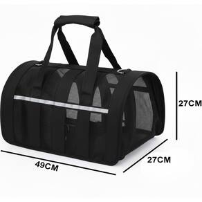 A Bolsa Pet foi desenvolvida para você poder transportar seu pet com mais facilidade. Ela possui dois tipos de alça uma para carregar com as mãos e outra para pendurar no ombro. Foi confeccionada com materiais de alta resistência, sua costura de alta qualidade com zíperes no acabamento e possui abas laterais em tela que fornecem uma ventilação saudável para o seu bichinho de estimaçao e permite manter o contato visual.
