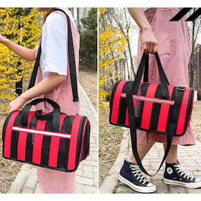 A bolsa possui faixa refletiva que garante boa visibilidade a noite e em lugares escuros, garantindo segurança ao transportar seu animal de estimaçao.