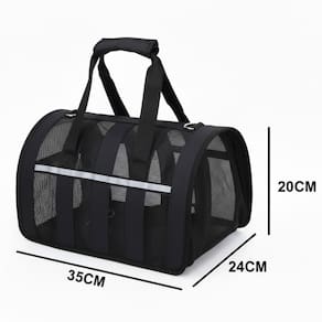 A Bolsa Pet foi desenvolvida para você poder transportar seu pet com mais facilidade. Ela possui dois tipos de alça uma para carregar com as mãos e outra para pendurar no ombro. Foi confeccionada com materiais de alta resistência, sua costura de alta qualidade com zíperes no acabamento e possui abas laterais em tela que fornecem uma ventilação saudável para o seu bichinho de estimaçao e permite manter o contato visual.