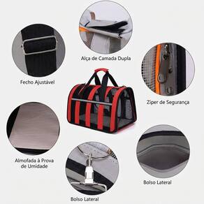 • SEGURANÇA INTERNA: Conta com guia fixa interna para prender na coleira do animal, evitando fugas ao abrir o zíper.