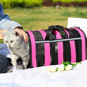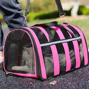 A Bolsa Pet foi desenvolvida para você poder transportar seu pet com mais facilidade. Ela possui dois tipos de alça uma para carregar com as mãos e outra para pendurar no ombro. Foi confeccionada com materiais de alta resistência, sua costura de alta qualidade com zíperes no acabamento e possui abas laterais em tela que fornecem uma ventilação saudável para o seu bichinho de estimaçao e permite manter o contato visual.
