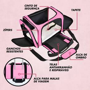 Faça parte do movimento rosa com elegância e garanta o máximo de bem-estar para seu pet em todas as aventuras! Adquira já sua Bolsa de Transporte para Pet e transforme cada jornada em um momento inesquecível para ambos!