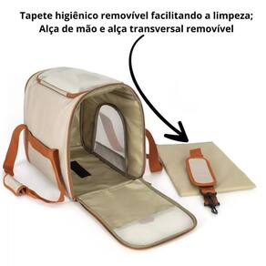 Bolsa Transporte Pet Viagem Carro Avião Cachorro Gato Cor: Bege Sua mais nova linha PET: prática, confortável e feita com qualidade excepcional A Bolsa de Transporte Pet é ideal para transportar seu cachorro ou gato com segurança e conforto, seja em viagens de carro, avião ou passeios do dia a dia.