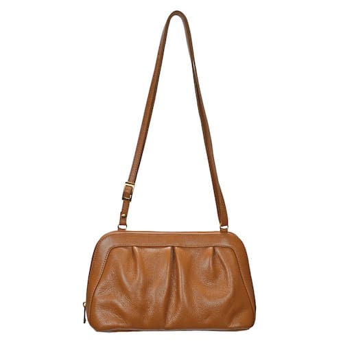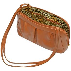 CARACTERÍSTICAS Material Externo : Confeccionada em COURO, de origem bovina com textura lisa e macia. Metais : Todos os metais / ferragens são na cor DOURADA com tratamento de banho antioxidante. Forro : Cetim com texturas em animal print (similar padrão "oncinha") Alça Comprida : Alça fixa não removível medindo 01 cm de largura por 140 cm de comprimento, com regulador de comprimento Parte Externa : Na frente e atrás couro franzido Parte Interna : Possui 1 divisão principal e 1 bolso fechado com zíper para pequenos objetos Fechamento : Com zíper de nylon de fácil deslize Peso : 300 gramas (ela vazia)