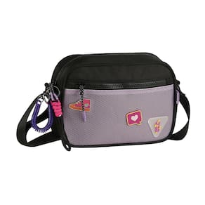 Características: - Confeccionada em nylon com detalhe em material telado - Alça acetinada - Zíper tratorado - Banho de metal preto - Puxadores de corda - Acompanha chaveiro de cadarços e molinha - Forro de poá