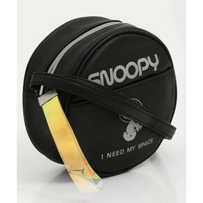Bolsa feminina, modelo transversal, confeccionada em material sintético. Possui repartição única com fechamento por zíper, estampa frontal Snoopy, bolso externo, alça transversal ajustável e sem remoção, forro em tecido, acabamento e costura no tom.