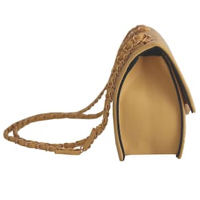 A alça de corrente dourada é regulável, podendo ser usada como tiracolo, de ombro ou de mão, e ajustada para um tamanho curto ou maior.