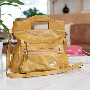 Feita à mão em couro . A nossa bolsa lateral é perfeita para levar tudo o que você mais precisa no dia-a-dia. Pequena, prática e com bolsos pensados para guardar com segurança chaves e celular. Cor: Mostarda. Alças: 1 alça fixa sem ajuste e 1 alça transversal Bolsos internos: Bolsos internos que funcionam como divisórias. Bolsos externos: 2 bolsos externos com fechamento por zíper. Divisórias: nenhuma. Medidas: Altura 27 cm, Largura 29 cm e Peso 600gr Marca: Não Informado