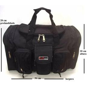 C= 50 cm x L= 28 cm x H= 30 cm vol: 40 L peso= 0.8 kg 2 bolsos laterais e 3 bolsos frontal Marca: Não Informado