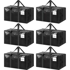 Pacote com 6 sacos de transporte extra pesados grandes com zíper forte e alças confortáveis, sacos de armazenamento de roupas resistentes e duráveis, caixas de transporte azuis, caixas de mudança para faculdade, preto - ?Extra resistente?Feito de tecido PE revestido extra espesso de 180 GMS atualizado, bolsas Fygrip com alças totalmente envolventes, zíper forte e costura reforçada prometem segurar com segurança mais de 29,5 kg de carga. - ?Capacidade extragrande? Tamanho de 73 cm C x 35 cm L x 33 cm A, estas bolsas de armazenamento extra grandes oferecem mais de 23 galões de volume, bolsas de embalagem perfeitas para a mudança de estudantes universitários. - ?Fácil de embalar e armazenar?Chega de complicações para montar e desembalar as caixas de mudança. Estas bolsas grandes apresentam um design de zíper aberto, você pode facilmente colocar sua roupa de cama grande dentro das bolsas. Você também pode dobrá-las facilmente após o uso para facilitar o armazenamento. - ?Aderência confortável Fyader?Equipado com alças largas, pode aliviar a carga durante o transporte à mão ou no ombro, proporcionando uma experiência de uso mais confortável. Sacos de armazenamento perfeitos, caixas de armazenamento, bolsas de armazenamento, recipientes para organizadores de armário e armazenamento. - ?Sem perfuração e à prova d'água?Estes sacos de embalagem resistentes são resistentes à perfuração e à prova d'água, eles podem suportar facilmente a jornada difícil de mudança, acampamento, viagem, organização e armazenamento do armário.