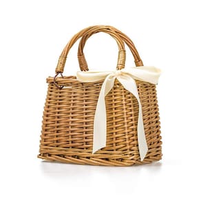 Bolso tote de mimbre rectangular tejido a mano, natural y retro, ideal para la playa y el verano, diseñado para mujeres.