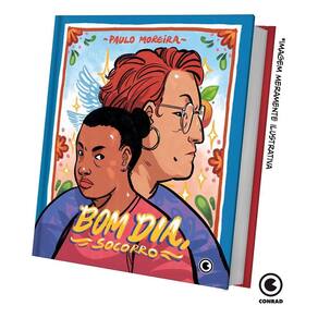 "Bom dia, grupo!", quem nunca recebeu uma mensagem assim, com uma figurinha cheia de rococós, e ficou o dia todo pego em trocas de mensagens no celular? Foi o que aconteceu com Beta e Socorro, que ficaram presas numa batalha de mensagens de celular, cada uma mais enfeitada que outra. Essa mistura de grupo de zap com anime de lutinha com um tempero bem brasileiro é o mote de Bom dia, Socorro, de Paulo Moreira. Lançado inicialmente nas redes do autor no Twitter, a história em quadrinhos está toda compilada neste álbum, que conta também com prefácio escrito por Érico Assis e extras exclusivos para a edição da Conrad, além de mais uma história inédita, revelada apenas na edição impressa.
