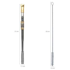 Garantia: 10 Anos / Peso: 070g / Conteúdo: 1 Bomba Chimarrão 18 Quilates e 1 Escovinha para Limpeza / Cor: Inox e Ouro / Ref: MDG202CANOSSASENHORA Dimensões da Bomba: 1,1cm (C) x 1,1cm (L) x 21cm (A) Dimensões da Escova: 1,5cm (C) x 1,5cm (L) x 23cm (A) Cuidados: Não lavar com materiais abrasivos Peça: Com rosca e Banho de ouro Acompanha: 1 Escovinha