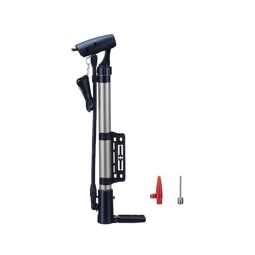 Bomba de alumínio para Pneu bicicleta e bolas Futebol Basquete - Prata Essa bomba é ideal para ter em casa ou em sua bicicleta, com ela você poderá encher os pneus de sua bicicleta, de bolas de futebol e etc... Possui trava de segurança para impedir que o bico escape e o ar vaze. Indicado para encher pneus de bicicleta e bolas. Possui suporte de fixação no quadro. Válvula inteligente com trava de bico e adaptador para bico fino. Um estágio ao bombear. Pressão Máxima: 120psi 8 Bar Material: Nylon e Alumínio. Dimensões: 31x3,5cm Conteúdo: 01 Bomba 02 Bicos adaptadores Marca: Huan