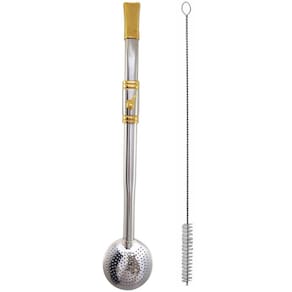 Tradição e qualidade para o seu mate ficar mais saboroso! Banhada a ouro 18K ela possui a rosca desmontável para após de encerrada a roda de chimarrão, fazer aquela limpeza da bomba, nesse momento você só precisa desenroscar o bojo e lavar com água corrente e usar a escovinha de auxilio para a limpeza. Pode ser usada para chimarrão, mate ou terere. Com pingentes variados aposte nesta bomba para compor sua cuia.