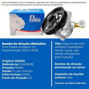 Bomba Da Direção Hidráulica Ford Fiesta Eco Sport 1.0 Supercharger - Indisa Dh206118 Bomba de Direção Hidráulica Ford Fiesta e EcoSport SuperCharger 2002 a 2006 - Indisa