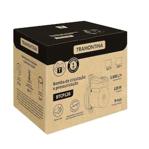 Eleve a pressão da água em sua casa, apartamento ou comércio com a bomba d''água elétrica de circulação e pressurização Tramontina BTCP120. Ideal para sistemas de aquecimento central, ar-condicionado, aquecedores solares e aplicações com passagem de gás, esta bomba garante maior vazão em chuveiros, torneiras e todos os seus pontos de uso, proporcionando mais eficiência e conforto no seu dia a dia. Com a BTCP120, a falta de pressão nunca mais será um problema! Seu corpo em ferro fundido e tratamento antiferrugem garantem durabilidade e resistência, enquanto o protetor térmico e o controle automático por fluxostato asseguram segurança e praticidade. A Tramontina BTCP120 é a solução completa para quem busca um sistema hidráulico confiável e de alta performance.