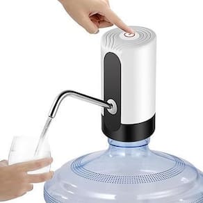 Bomba de água elétrica recarregável via USB, compatível com galões de 5L, 10L, 20L e similares. Bateria de longa duração, materiais seguros (aço inox 304, plásticos PP, ABS, EVA, silicones, alumínio).Água gelada