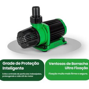 A estrutura da bomba conta com proteção IPX8, o que garante funcionamento submerso seguro em até 1,5 metro de profundidade por períodos prolongados. Sua altura máxima de elevação de 5 metros permite uso em instalações verticais ou com desníveis. A grade de proteção inteligente impede a entrada de partículas maiores, protegendo o motor e aumentando sua durabilidade, enquanto as ventosas de ultra fixação asseguram estabilidade e segurança na instalação.