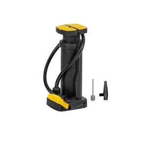 Cor: preto e amarelo ( enviado ) Dimensões aprox: alt:17,5cm x comp: 8cm x larg: 6,5cm Composição: Ferro e plástico Sistema: acionamento por pedal Pedal antiderrapante Bico fixador para manter a firmeza ao bombear Acompanha 2 bicos adaptadores Uso: bolas, pneus de bicicleta, brinquedos infláveis, entre outros Estrutura compacta e resistente