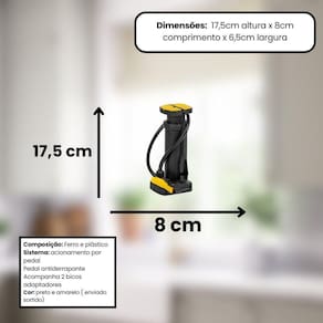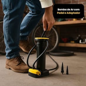 Bomba de Inflar Multifuncional - Praticidade e Eficiência!Ferramenta prática para inflar bolas, pneus de bicicleta e brinquedos infláveisEstrutura resistente com pedal antiderrapante para maior segurançaDois bicos adaptadores inclusos para diferentes tipos de válvulasBico fixador que garante conexão estável e evita vazamentos de arCompacta e fácil de transportar, ideal para uso em casa, ou viagensSistema de acionamento por pedal que reduz o esforço durante o inflar