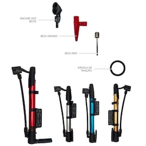 Contém; 01 Bomba De Ar Com Suporte Pneu Multiuso Bico Fino e Grosso