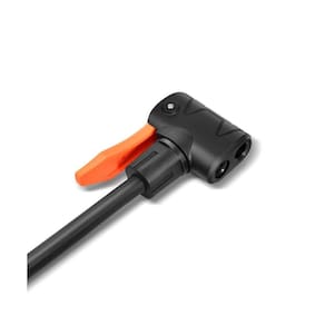 Garanta já a sua bomba de ar da Atrio A Bomba de Ar de Chão da Atrio é feita em aço e plástico. A pressão máxima é de 140PSI e é compatível com válvula de bico fino presta e válvula de bico grosso schrader .