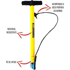 Bomba super leve e de fácil operação e manuseio para usar no dia a dia, em viagens, em passeios de bicicleta, no trabalho e uma excelente opção de ferramenta para ter em casa, para suprir algumas emergências do dia a dia e também por ser indicada para vários tipos de enchimento. Com a facilidade de operação, manuseio e simplicidade, deixando muito mais rápido na hora de encher o pneu da bicicleta,carro de mão,pneu de carro,moto e entre outros. Construída em Aço Carbono, com apoio para os pés e bico de encher câmara e pneu, compacta, sendo perfeita para levar para vários lugares, sem nenhum incomodo. Indicada para Inflar e Encher: - Bicicleta; - Moto; - Patinete; - Carrinho de Mão; - Colchões de ar; - Piscina inflável;