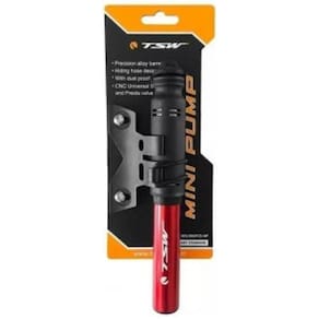 - marca: tsw - cor: vermelha - modelo: manual - material: nylon - válvulas: americana e presta - capacidade máxima: 110 psi - ponteira reversível: schrader e presta - cabo telescópico: maior volume de ar a cada bombeada - possui trava para evitar vazamento no inflar - acompanha um suporte para prender no quadro