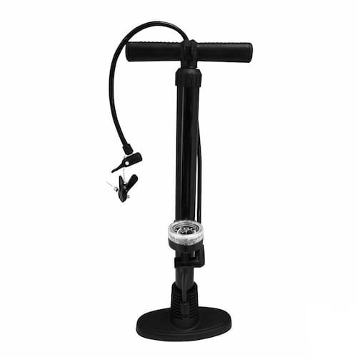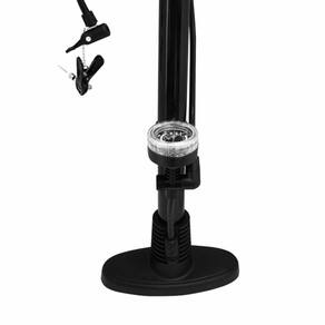 Modelo: Bomba Para Encher Pneus com Manômetro. Material: Plástico. Composição: Bico com prendedor, mangueira e manômetro. Peso Kg : 1,9. Dimensões mm : A 660 mm x L 94 mm.