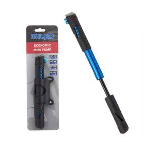 - Marca: Giyo - Modelo: Mini Pump Gp 49 - Material: Alumínio Polímero - Cor: Preto com azul - Peso: 110 g - Conexão: 360 - Max. PSI: 120 PSI - Tipo de Bico: Fino e Grosso - Comprimento fechada: 20 cm Acompanha suporte e parafusos para a fixação no quadro Marca: Não Informado Ean: 4713095662102