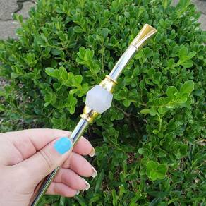 Bomba de Chimarrão Bojo Mil Furos Inox 25cm Pedra Ágata com Rosca Bortonaggio .