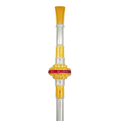 Descrição: Folhas e anel central de ouro circundado com 22 rubis.