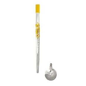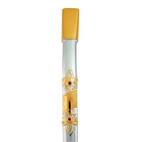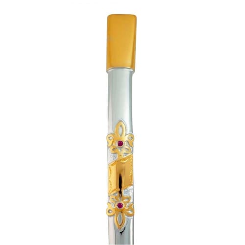 Descrição: Cano liso, detalhe com duas flores de lis, com rubis e no meio uma chapinha em ouro, Com bojo rosqueável.