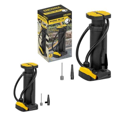 Bomba de Encher com Pedal e Bicos para Diversos Usos Especificações: Cor: Preto e Amarelo enviado Dimensões aproximadas: 17,5 cm altura x 8 cm comprimento x 6,5 cm largura Composição: Estrutura em ferro com detalhes em plástico resistente Sistema: Acionamento por pedal com superfície antiderrapante Acessórios inclusos: 2 bicos adaptadores + bico fixador Para que serve / Funcionalidades: Ideal para inflar bolas esportivas, pneus de bicicleta, brinquedos infláveis, bóias e outros itens que utilizem válvulas comuns. Versátil para uso em casa, escolas, atividades esportivas e viagens. O pedal antiderrapante garante estabilidade e conforto durante o uso. Descrição: Essa bomba de ar com acionamento por pedal é uma ferramenta prática e eficiente para uso diário. Sua estrutura compacta facilita o transporte e o armazenamento, enquanto o pedal antiderrapante oferece firmeza ao bombear. Acompanha dois bicos adaptadores que permitem seu uso em diferentes tipos de válvulas, além de um bico fixador que assegura a vedação durante o enchimento, evitando vazamentos. Seu funcionamento ergonômico reduz o esforço físico, tornando o processo de inflar mais rápido e cômodo. O que contém: 1 Bomba de ar com pedal 2 Bicos adaptadores 1 Bico fixador Marca: Não Informado