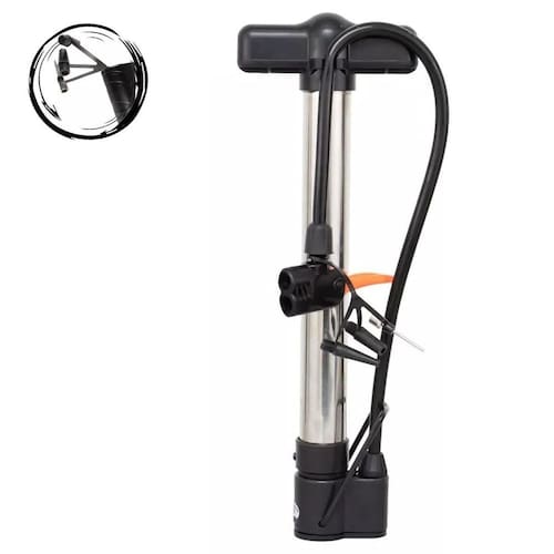 Projetada para inflar através do pé, pneus de bicicletas, carro, moto, bolas, balões, boias, colchões de ar e etc. Possui um bico duplo, isso possibilita que ela seja utilizada com válvulas presta bico fino ou com válvula shader americana / bico grosso