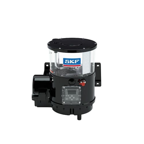 Bomba de Lubrificação SKF LL/KFG3-5W2-M 924A bomba KFG operada eletricamente inclui um eixo de transmissão com um colar excêntrico que desloca até três elementos de bombeamento. Ela é composta por quatro componentes principais: caixa de mancal com elementos de bombeamento, reservatório com monitoramento de nível de abastecimento, unidades de controle interno e elementos de fixação. A bomba está disponível em oito tamanhos e duas variantes para uso estacionário ou com a tecnologia de placa de leva de graxa para utilização em qualquer posição. Uma variedade de elementos de fixação permite abastecimento do reservatório, protege a bomba (válvula de limitação de pressão) ou permite a conexão descomplicada da bomba em um sistema de lubrificação centralizado.