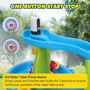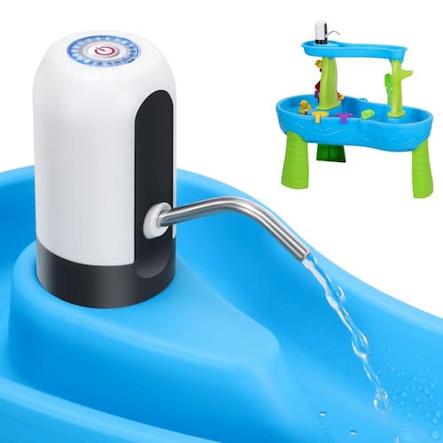 Bomba de água portátil para mesa de água, bomba de água para crianças, acessórios de mesa de água. Transforme seu lençol de água comum em um oásis de fonte sem fim com nossa bomba portátil para mesa de água. Sem necessidade de cabos ou eletricidade, basta configurar sem esforço para horas de alegria no verão. - Fácil transformação de mesa de água para crianças: com nossa inovadora bomba de mesa d'água, transforme seu lençol de água comum em um oásis de fonte hipnotizante para seus filhos. Sem cabos, sem complicações – diversão de verão sem fim! - Instalação sem complicações: basta fazer um furo na parte superior para conectar o tubo à parte inferior da bomba, passar pelo orifício no lençol freático e deixar a água fluir naturalmente. A configuração simples significa mais tempo para diversão. - Operação contínua de um botão: experimente diversão sem preocupações com nossa bomba de água segura e portátil. Funciona de forma independente com uma bateria recarregável embutida, garantindo segurança em torno de seus filhos. Sem cabos significa que não há perigos de tropeçar. - Configuração sem esforço: mergulhe em aventuras aquáticas instantaneamente com nossa bomba de água fácil de instalar. Basta anexar à sua mesa de jogos aquáticos e deixar a diversão começar. Seu design compacto se encaixa em vários lençóis d'água e garante armazenamento sem complicações. - Uso versátil: perfeito para reuniões ao ar livre, festas de aniversário ou simplesmente adicionar emoção às brincadeiras diárias. Deixe seus filhos explorarem a alegria da água corrente com nossa bomba de mesa de água.