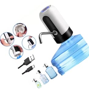 Sua operação é simples: basta encaixar a bomba no gargalo do galão de água, pressionar um botão e ela começará a bombear água automaticamente, eliminando a necessidade de levantar e virar o galão pesado. Além disso, possui um indicador LED que facilita a visualização durante o processo de bombeamento.