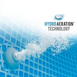 Todos os bombas de água INTEX estão equipados com Hydro Aeration Technology, um sistema que melhora a filtração, aumenta a pureza da água, bem como a quantidade de iões negativos na superfície que ajudam a criar um ambiente higienizado, sem maus cheiros e livre de poluição.