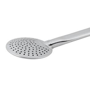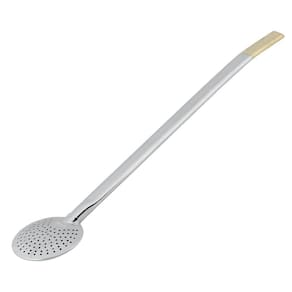 Bomba para chimarrão e tereré Garibaldi fabricada em ferro, possui cano chato, bojo redondo e biqueira com pintura dourada.