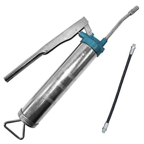 Bomba manual de alavanca lateral para graxa de 500g, sendo ideal para lubrificação com graxa em geral. Fabricado em aço, proporciona durabilidade e eficiência.