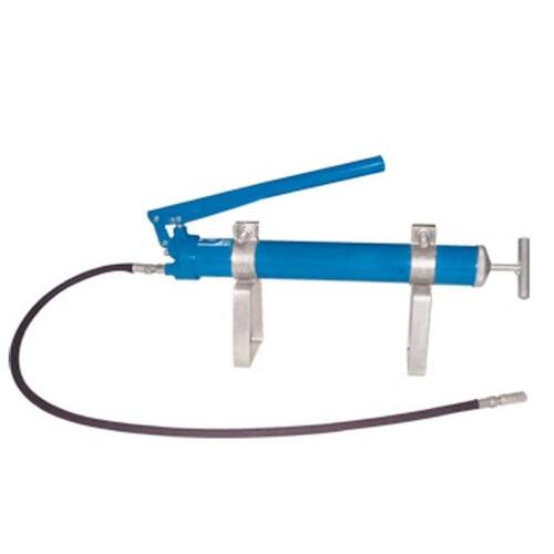 Bomba Manual para Graxa com alavanca lateral e suporte - Possui extensão flexível de alta pressão de 1 m e acoplador hidráulico mod. 310-C - Desenvolve pressão de até 6.000 PSI - Permite utilização de cartuchos graxa - Vazão de 1 g por acionamento - Largura: 300 mm / Altura: 470 mm - Capacidade de 750 cm