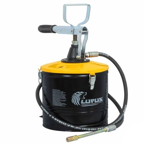 Bomba Manual Para Graxa 7000 7Kg - Lupus Bomba manual para graxa com compactador e mola, recomendada para clientes que nao dispoem de ar comprimido, aplicacao em locais de dificil acesso e que tenha um volume medio de consumo. Indicado para todo segmento de mercado, principalmente em canteiros de obras, fazendas, terraplenagem, locadoras de maquinas pesadas, etc. Reservatório de 7kg Pressão de Saída 3.000 PSI Características: Bomba Manual para Graxa com reservatório. Bombeamento por deslocamento da alavanca. Mangueira de alta pressão 1,3 metros Extensão rígida e acoplador hidráulico Características Gerais do Produto: Peso Gr : 5000g Dimensões: 40X23cm : 12 meses Marca: Não Informado
