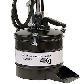 Especificações Técnicas: - Capacidade: 4Kg - Pressão de saída (PSI): 4000 - Mangote para alta pressão - Parafuso de fechamento prático e seguro - Material do Balde: Aço com revestimento interno em PVC. - Funcionamento da Mola e Disco Compactador: Empurram a graxa em direção ao fundo do balde através do sistema de bombeamento. - Mola que auxilia na raspagem da graxa
