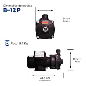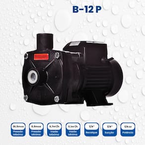 Indústrias/Processos: Circulação, Filtragens, Máquinas Operatrizes, Utilidades, Fornos de Indução, Cabine de Pintura. Acompanha bóia elétrica: Não Acompanha válvula de retenção: Não Altura: 18,5 cm Altura manométrica total: 17 mca Ambiente Principal: Jardim e Varanda Composição: Carcaça, rotor e tampa traseira em termoplástico. Anel O'ring de vedação da carcaça em Buna N. Selo mecânico: Faces em grafite e cerâmica. Mola em inox 304 e elastômero (borracha) em Buna N. Comprimento: 31,1 cm Conexão de entrada/saída: Sucção 3/4" x Recalque 3/4" Ergonômico: Não Funcionamento: Elétrica Itens Inclusos: BOMBA MONOESTÁGIO B-12 P 1/4 CV Largura: 14 cm Manual de Montagem e Instalação: https://product-hub-prd.madeiramadeira.com.br/958310/documents/f9c7e9cd-aab1-42fb-b28a-d8748176a41d2449559578317287660129137.pdf Material Principal: Termoplástico Modelo: BOMBA MONOESTÁGIO B-12 P 1/4 CV THEBE Necessita Montagem: Não Origem do Produto: Nacional Peso: 5,4 kg Potência do motor: 0,25 HP Profundidade de sucção: 4 m Recomendações de Uso, Manutenção e Limpeza: Verifique nosso Manual de Manutenção Rotação do motor: 3.500 rpm Temperatura Máxima da Água: 40 °C Tipo de bomba de água: Centrífuga Vazão máxima: 5.700 L/h Voltagem: Bivolt