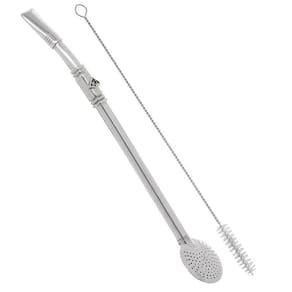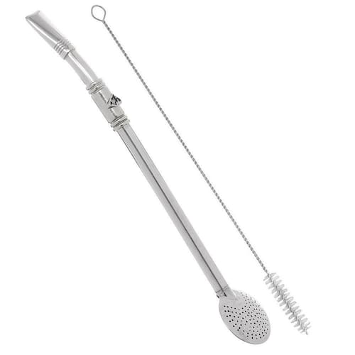 Bomba para chimarrão e tereré Garibaldi fabricada em Aço Inox, possui cano redondo, anel com detalhe em boton de Cabeça de Cavalo, biqueira e bojo modelo redondo desmontável que possibilita a limpeza interna após o uso. Acompanha escova para limpeza interna.