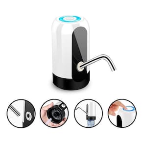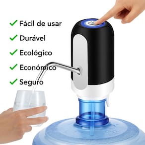 Bomba elétrica para galão de água, leve, portátil e recarregável via USB. Compatível com galões de 5L, 10L e 20L. Autonomia para bombear até 8 galões de 20L por carga. Construída com aço inox 304 e silicone. Pode ser utilizada enquanto carrega. Tempo de recarga de até 3 horas. Voltagem para recarregar: Bivolt 110–220 V (via carregador USB).Água gelada