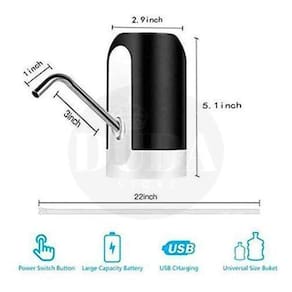 Bomba elétrica portátil para galão de água, com bateria interna recarregável via USB, ideal para uso doméstico, em escritórios, camping e piqueniques.Água gelada